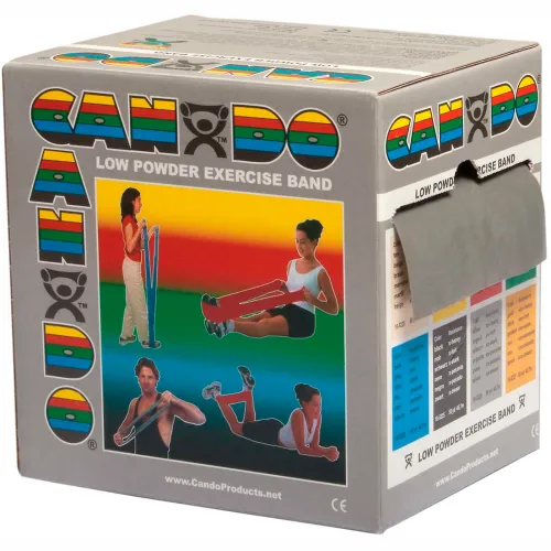 CanDo® Low Powder Exercise Band, Silver, 50 Yard Roll, 1 Roll/Box