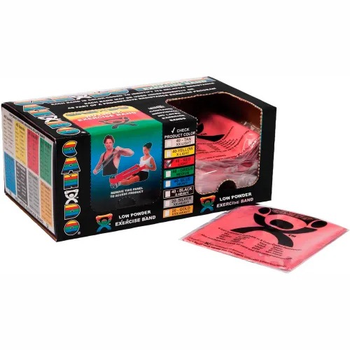 CanDo® Low Powder Pre-Cut Exercise Band, Light, Red, 48"L Strip, Box of 40