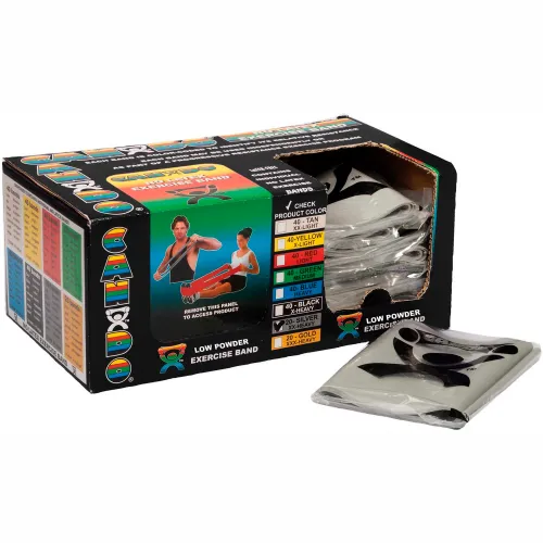 CanDo® Low Powder Pre-Cut Exercise Band, XX-Heavy, Silver, 48"L Strip, Box of 40