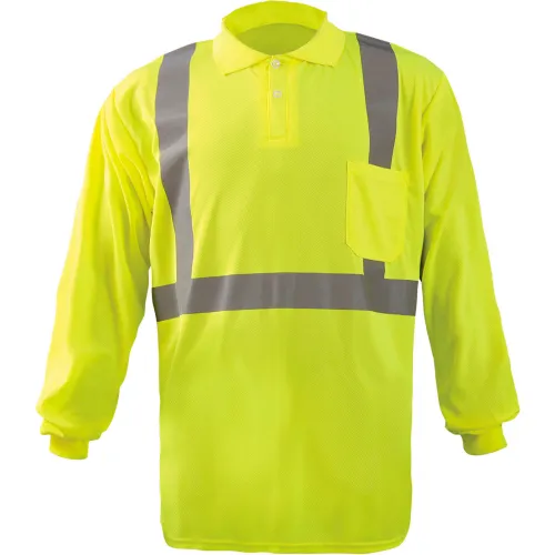 Occunomix LUX-LSPP2B-Y5X Birdseye Polo, Wicking & Cooling Long Sleeve, Class 2, Yellow, 5XL