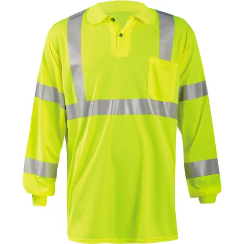Occunomix LUX-LSPP3B-YS Birdseye Polo, Wicking & Cooling Long Sleeve, Class 3, Yellow, S