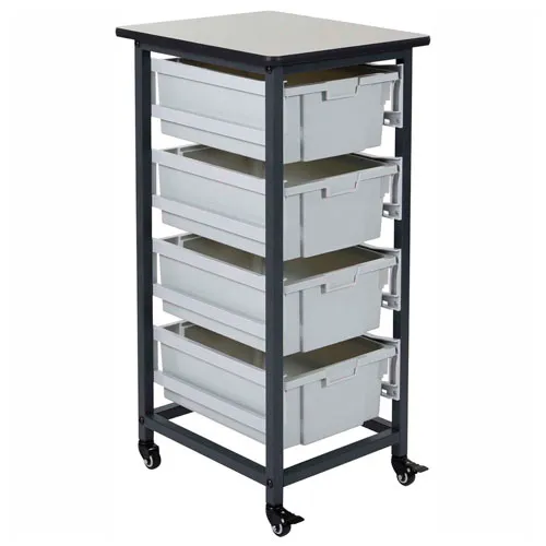 Luxor Mobile Bin Cart with Four 6"H Totes MBS-SR-4L - Gray/Black, 19-1/2"L x 17"W x 37-1/4"H