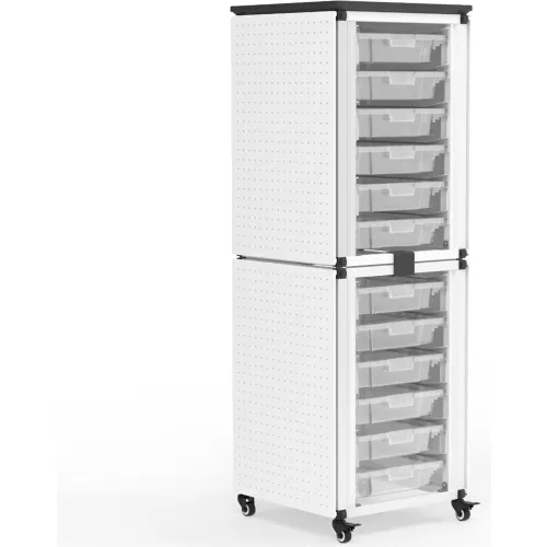 Luxor Modular Classroom Storage Cart, 2 Stacked Modules, 12 Small Bins, 18"L x 18"W x 57"H, White