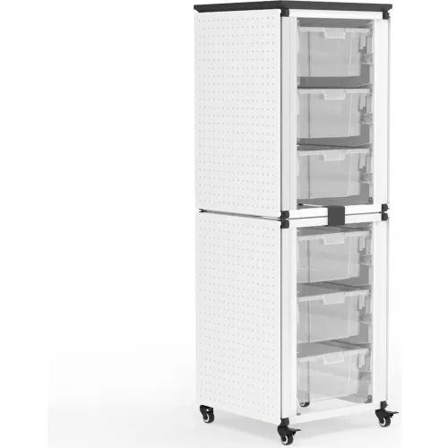 Luxor Modular Classroom Storage Cart, 2 Stacked Modules, 6 Large Bins, 18"L x 18"W x 57"H, White