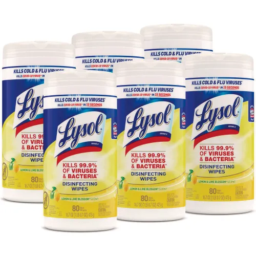 LYSOL® Brand Disinfecting Wipes, 1-Ply, Lemon & Lime Blossom, 80 Wipes/Canister, 6 Canisters/CT