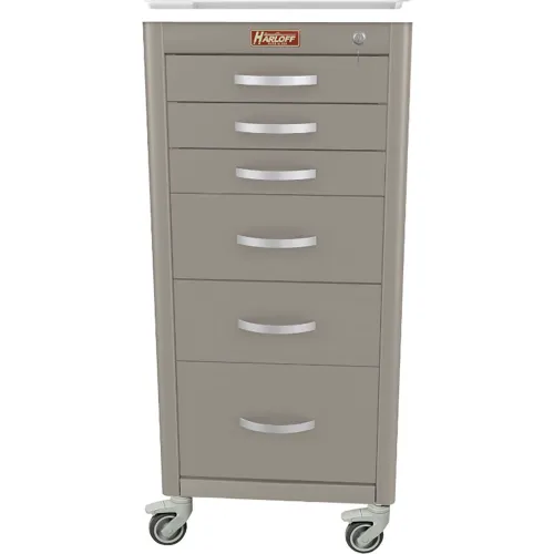 Harloff M-Series Narrow Procedure Cart, 6 Drawers, Key Lock, 18"W x 18"L x 40-3/4"H, Brushed Silver