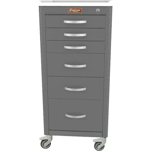 Harloff M-Series Narrow Procedure Cart, 6 Drawers, Key Lock, 18"W x 18"L x 40-3/4"H,Hammertone Gray