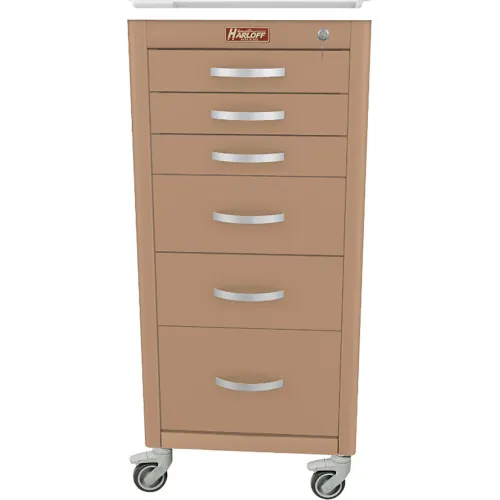 Harloff M-Series Narrow Procedure Cart, 6 Drawers, Key Lock, 18"W x 18"L x 40-3/4"H, Taupe
