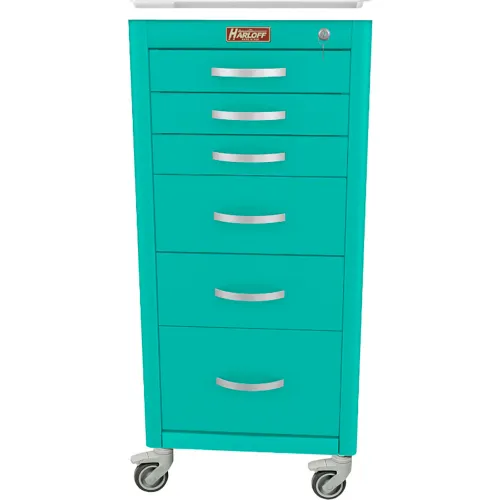 Harloff M-Series Narrow Procedure Cart, 6 Drawers, Key Lock, 18"W x 18"L x 40-3/4"H, Teal