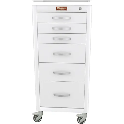 Harloff M-Series Narrow Procedure Cart, 6 Drawers, Key Lock, 18"W x 18"L x 40-3/4"H, White