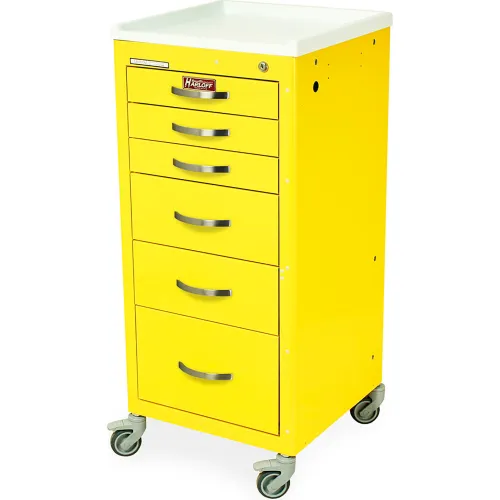 Harloff M-Series Narrow Procedure Cart, 6 Drawers, Key Lock, 18"W x 18"L x 40-3/4"H, Yellow