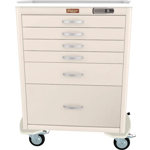 Harloff M-Series Tall Procedure Cart,6 Drawers & E Lock,36-3/4"W x 22"L x 43-3/4"H,Cream