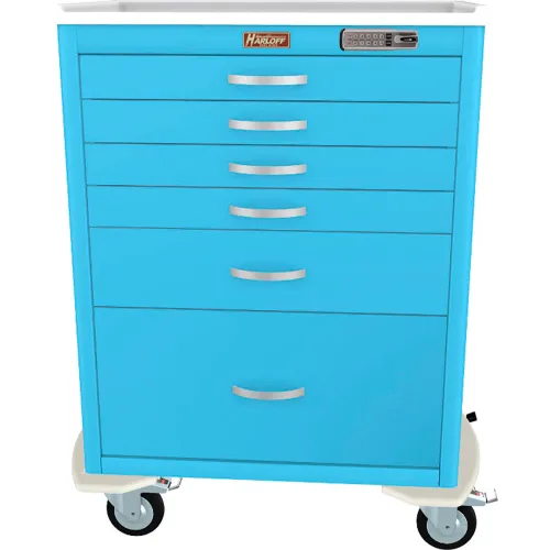 Harloff M-Series Tall Procedure Cart,6 Drawers & E Lock,36-3/4"W x 22"L x 43-3/4"H,Light Blue