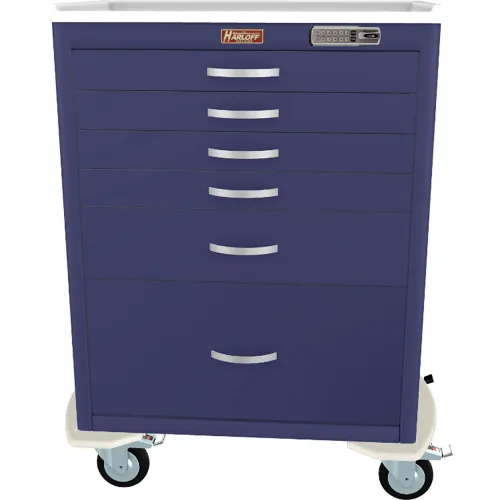 Harloff M-Series Tall Procedure Cart,6 Drawers & E Lock,36-3/4"W x 22"L x 43-3/4"H,Navy