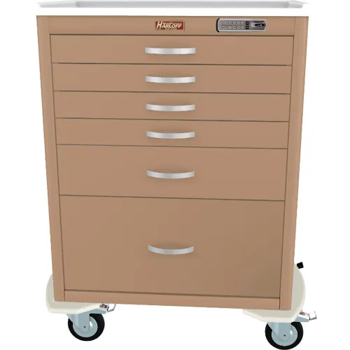 Harloff M-Series Tall Procedure Cart,6 Drawers & E Lock,36-3/4"W x 22"L x 43-3/4"H,Taupe