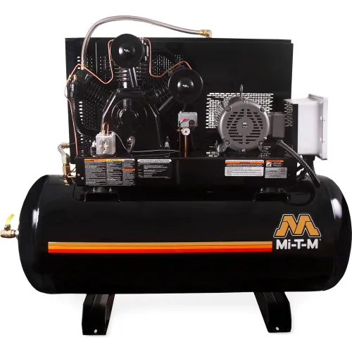 Mi-T-M® M Simplex Two Stage Horizontal Air Compressor, 10 HP, 120 Gal. Cap., 175 PSI, 3PH, 200V