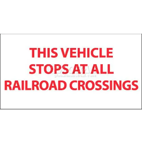 NMC M371P Vehicle Sign, This Vehicle Stops At All Railroad Crossings, 9" X 20", White/Red