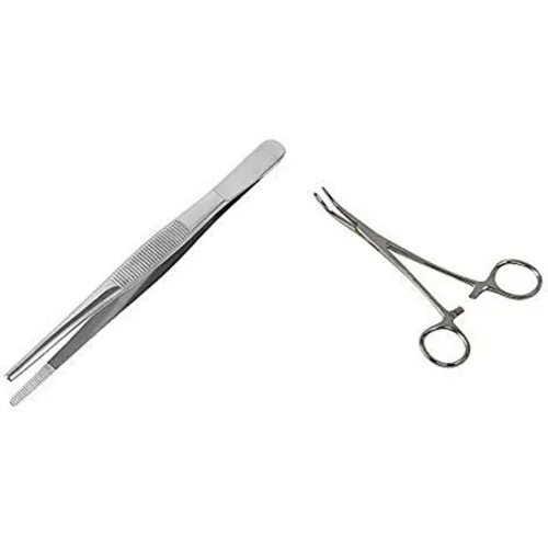 MABIS Stainless Steel Tweezers, Thumb Dressing Forceps, Serrated Forceps, Silver