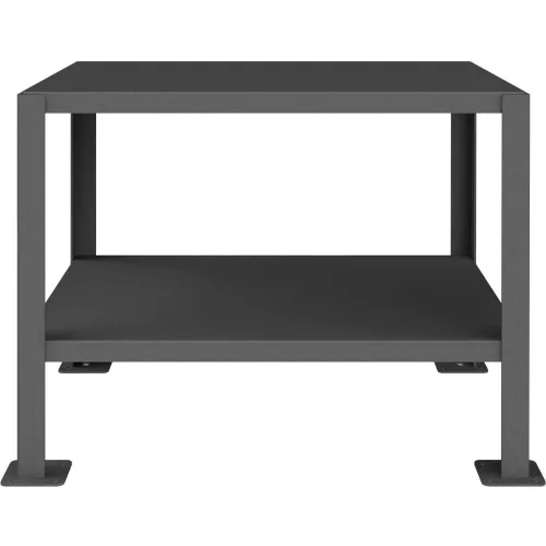 Durham Mfg. Stationary Machine Table W/ 2 Shelves, Steel Square Edge, 36"W x 24"D, Gray