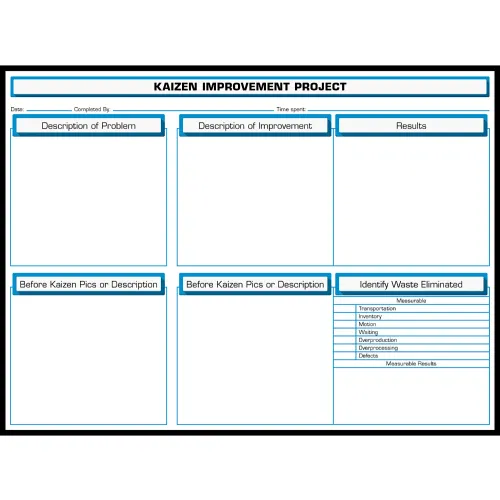 Visual Workplace Magnetic Dry Erase Board Kaizen Improvement Project, 1/8" Thick, 48"W x 36"H