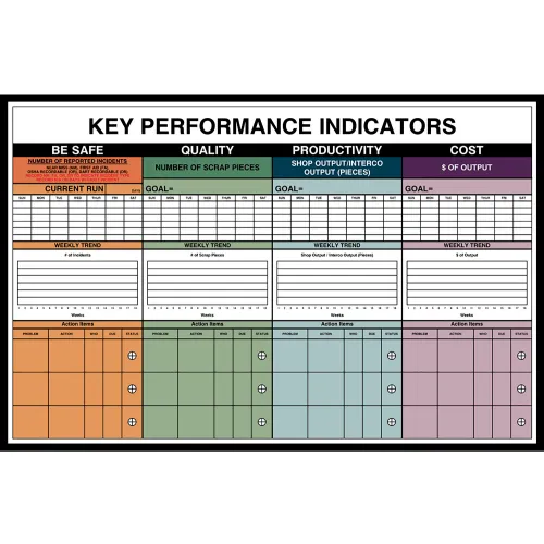 Visual Workplace Magnetic Dry Erase Board KPI Color Section, 1/8" Thick, 36"W x 24"H
