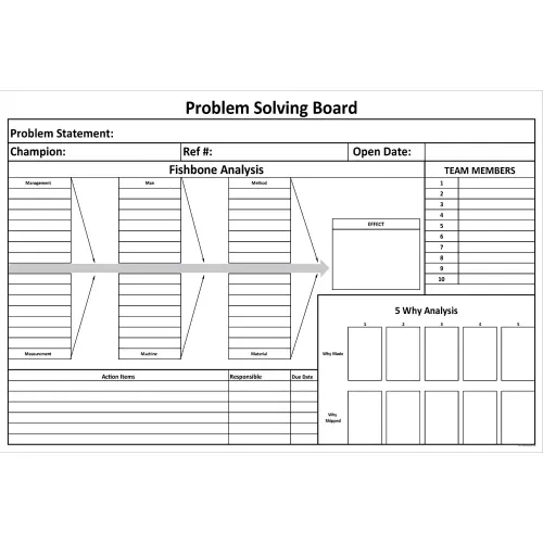 Visual Workplace Magnetic Dry Erase Board Problem Solving - Fishbone & 5 Why,1/8" Thick, 72"W x 48"H