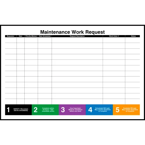 Visual Workplace Magnetic Dry Erase Overlay Maintenance Work Request Board, 72"W x 48"H