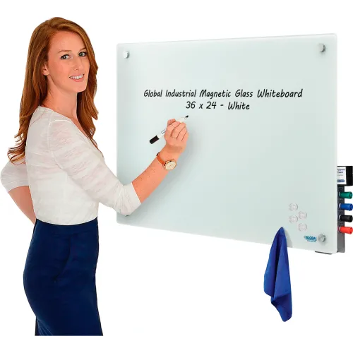 Global Industrial Magnetic Glass Whiteboard, 36"W x 24"H