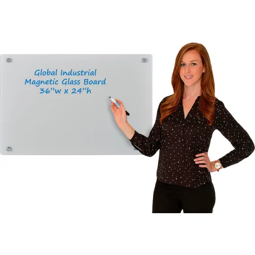 Global Industrial™ Magnetic Glass Dry Erase Board - 36"W x 24"H - Gray