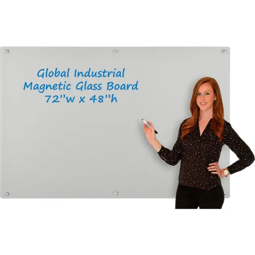 Global Industrial™ Magnetic Glass Dry Erase Board - 72"W x 48"H - Gray