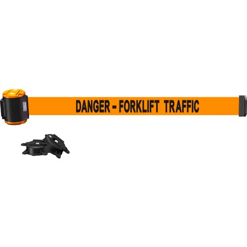 Banner Stakes Magnetic Wall Mount Barrier, 15' Orange "Danger-Forklift Traffic" Banner