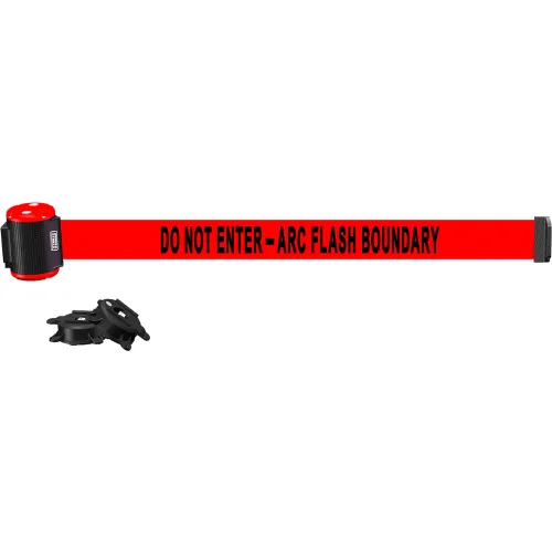 Banner Stakes Magnetic Wall Mount Barrier, 15' Red "Do Not Enter-Arc Flash Boundary" Banner