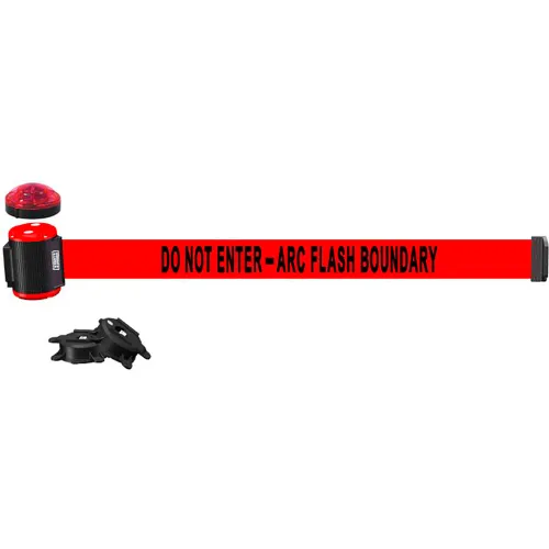 Banner Stakes Magnetic Wall Mount Barrier W/Light Kit,15'Red"Do Not Enter-Arc Flash Boundary"Banner