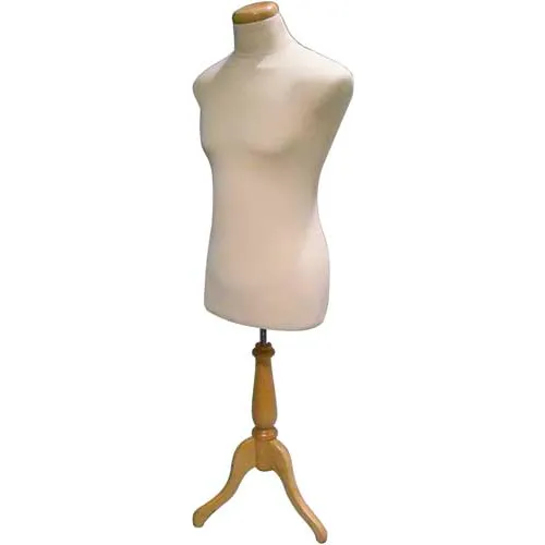 Male 3/4 Body Form - Off White W/Natural Wood Tripod Base