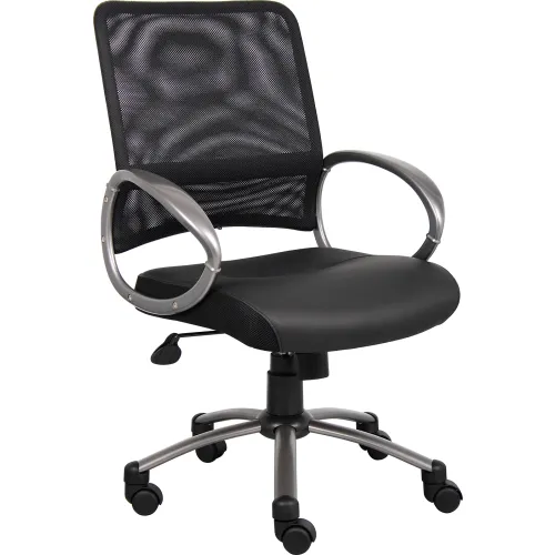 Boss Mesh Reception Guest Chair with Arms - Vinyl - Black