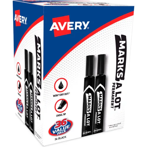 Avery® MARKS A LOT Large Desk-Style Permanent Marker Value Pack, Broad Chisel Tip, Black, 36/Pk