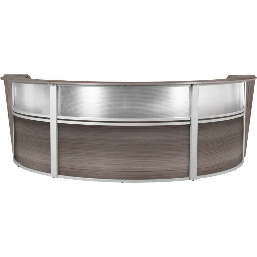 Regency Marque Plexi Triple Unit Reception Workstation, 143-1/2"W x 71"D x 45-1/2"H, Driftwood Gray