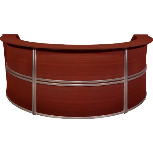 Regency Marque Triple Unit Reception Curved Desk Workstation, 143-1/2"W x 71"D x 45-1/2"H, Mahogany
