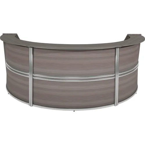 Regency Marque Triple Unit Reception Curved Workstation, 143-1/2"W x 71"D x 45-1/2"H, Driftwood Gray
