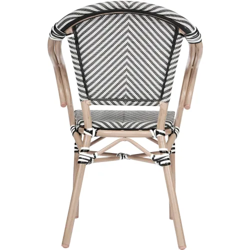 Flash Furniture® Marseille Bistro Stacking Chair w/ Arms, Black/White Seat, Light Natural Frame