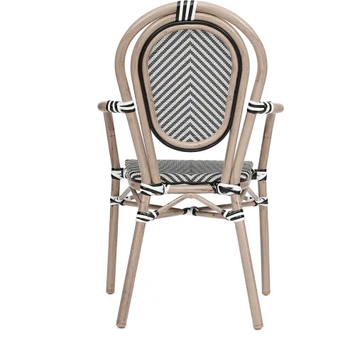 Flash Furniture® Marseille Thonet Bistro Stacking Chair w/Arms, Black/White Seat, Natural Frame