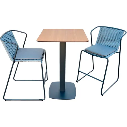 Babmar Martinique Bistro Bar Set For 2, Gray Rope, HPL Teak Top, Charcoal Gray Frame