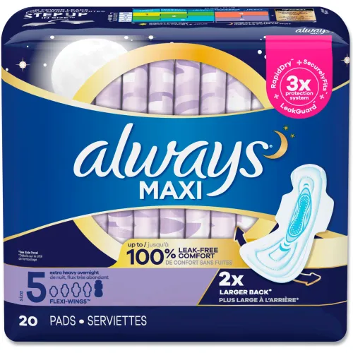 Always® Maxi Pads, Extra Heavy Overnight, 20 Pads/Pack, 6 Packs/Case - 17902