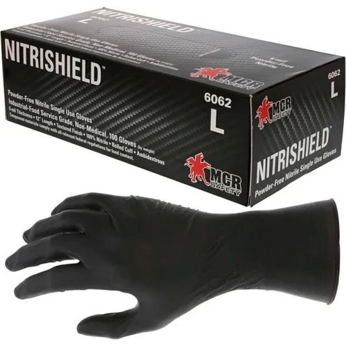 MCR Safety 6062 Nitri Shield Stealth Extra Gloves, 6 MIL, Black, Large