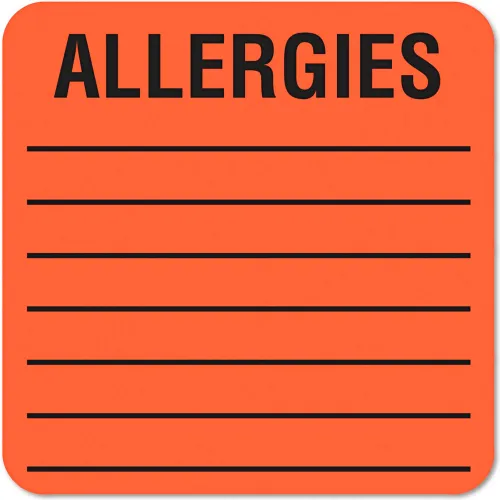 Tabbies® Medical Labels for Allergies, 2 x 2, Orange, 500/Roll