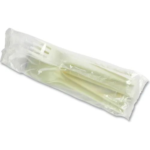 Vegware Mediumweight Compostable Cutlery Kit, Fork/Knife/Spoon/Napkin, CPLA, White, 250/Case