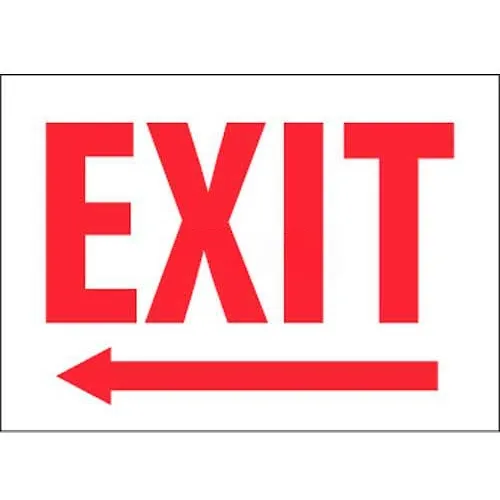 NMC MELPB Fire Sign, Exit With Left Arrow, 10" X 14", White/Red