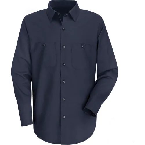 Red Kap® Men's Wrinkle-Resistant Cotton Work Shirt Long Sleeve Long-XL Navy SC30-SC30DNLNXL