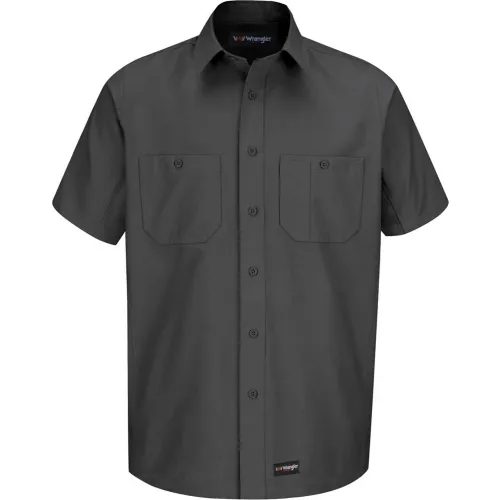 Wrangler® Men's Canvas Short Sleeve Work Shirt Charcoal Long-2XL-WS20CHSSLXXL