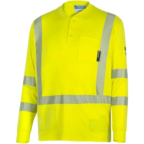Oberon Men's Cotton Flame Resistant Henley Shirt, S, HI-Vis Yellow